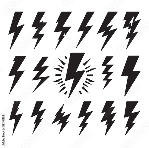 lightning, thunder, bolt, thunderbolt, flash, pictogram, power, signs, silhouette, thunderstorm, weather, charge, energy, warning, danger, element, light, set, voltage, icon, zigzag, arrow, climate, electronic, fast, graphic, hitting, shiny, shock, speed, storm, strike, discharge, electrical, logotype, simple, battery, illustration, linear, modern, retro, shape, vintage