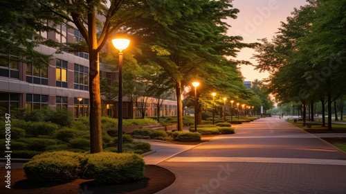 light, office, park, illustration, evening, building, atmosphere, sky, pink, people, walking, path, ing, tree, fairy, magical, scene, distance, seating, bustling, employee, hot drink, home, background, illuminated, cosy, inviting
