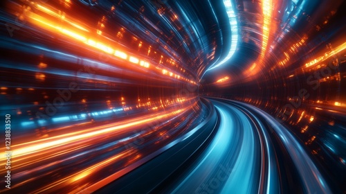 future, speed, light, tunnel, space, blue, orange, line, dynamic, abstract, dreamlike, background