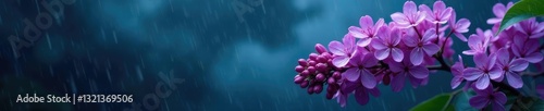 Lilac flowers blooming on a dark and stormy night, flowerpower, rainy, scenery