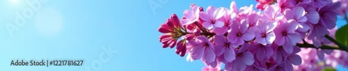Lilac tree in full bloom against a clear blue sky, spring season, gardening