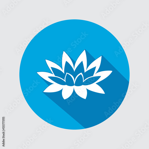 Lily flower icon. Water-lilies, waterlily floral symbol. Round circle flat sign with long shadow. Vector