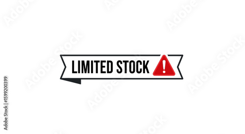 Limited Stock Warning Ribbon Banner with Exclamation Mark Icon Vector