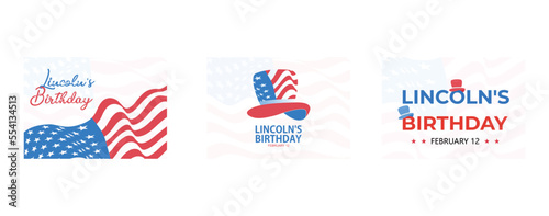 Lincoln's birthday holiday, February 12, Celebrating the birthday of one of the most popular presidents of America, set flat vector modern illustration