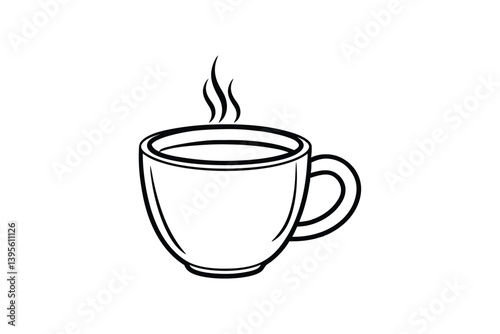 Line art design of a classic coffee mug with steam rising above.eps