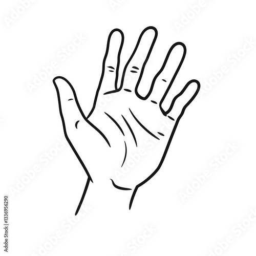 line art icon of a hand raised in a friendly wave PNG, symbolizing greetings and warmth.