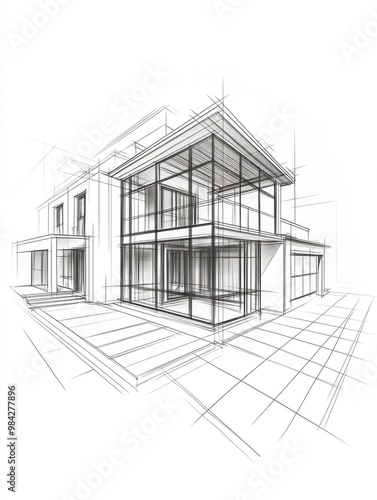 line, art, illustration, three-dimensional, architectural, drawing, house, design, blueprint, architecture, vignetting, modern, construction, building, home, residential, creative, visual, graphic, structure, project, detail, model, space, concept, interior, exterior, plan, contemporary, style, aesthetic