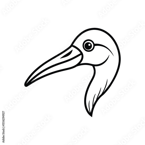 stork, line, art, illustration, face, beak, bird, animal, wildlife, nature, vector, drawing, vignetting, black, white, minimalist, simple, graphic, icon, symbol, design, cartoon, isolated, wild, avian, graceful, elegant, long, neck, head, profile, outline, monochrome, digital, hand-drawn, print, logotype, tattoo, t-shirt, childcare center, baby, delivery, birth, new, family, cute, abstract, artistic