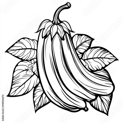 aubergine, vegetable, illustration, drawing, line, art, graphic, design, food, nature, plant, leaf, monochrome, black, white, vignetting, healthy, fresh, organic, cooking, ingredient, botanical, agriculture, harvest, farm, garden, produce, diet, vegetarian, vegan, still, life, artwork, image, picture, vector, clip art, printable, template, isolated, background, detail, closeup, ripe, purple, oblong, glossy, smooth, shiny