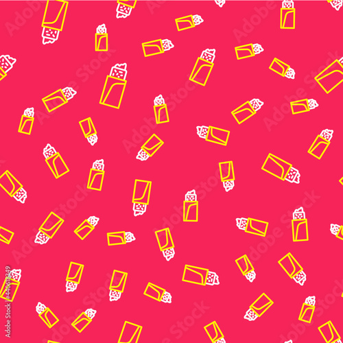 Line Burrito icon isolated seamless pattern on red background. Traditional mexican fast food. Vector
