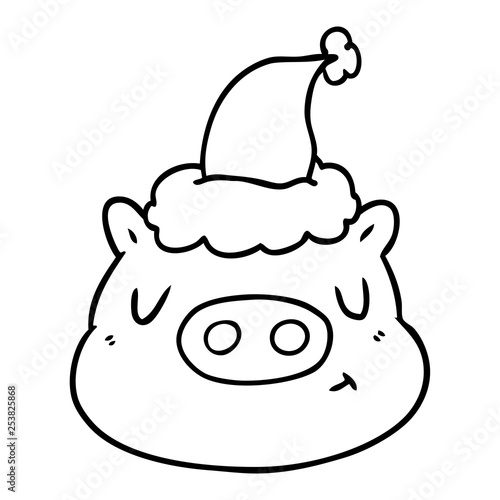 pig, head, face, animal, cute, cartoon, line, drawing, illustration, retro, doodle, freehand, free, hand, drawn, quirky, art, funny, character, santa, hat, christmas, christmas, wearing, festive