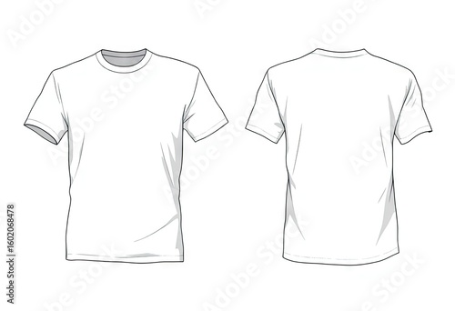 shirt, tee, t-shirt, white, cotton, casual attire, plain, simple, design, apparel, clothing, garment, front, back, view, unisex, male, female, blank, template, fashion, style, attire, wear, textile, fabric, soft, comfortable, summer, spring, everyday, classic, basic, minimal, clean, neat, monochrome, outline, drawing, illustration, graphic, vector, image, artwork, product