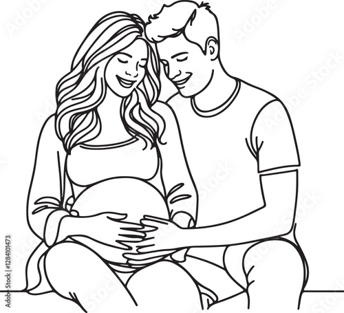 pregnancy, maternity, illustration, art, drawing, line art, couple, family, love, support, happiness, joy, woman, man, husband, wife, expecting, parenthood, motherhood, fatherhood, baby, anticipation, together, hugs, bond, care, affection, tenderness, connection, oneness, partnership, growth, nurturing, health, wellness, antenatal, ultrasound, belly, silhouette, contour, vignetting, design, vector, minimalism