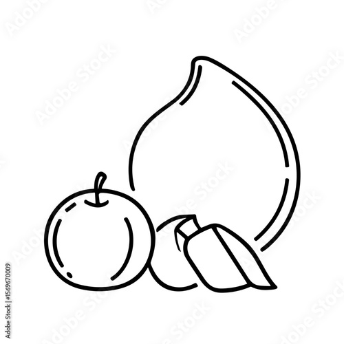 mango, apple, fruit, line, drawing, illustration, graphic, design, vignetting, outline, black, white, simple, minimalist, clip art, vector, image, icon, food, tropical, citrous, sweet, juicy, healthy, eating, dessert, snack, vitamin, nature, agriculture, harvest, organic, fresh, ripe, delicious, summer, leaf, slice, piece, segment, botanical, plant, artwork, monochrome, single, object, isolated, background