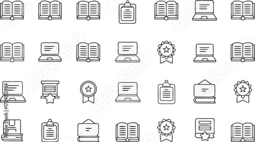 Line Icons Collection: Books, Laptops, Certificates, Stars for Education and Achievement Designs