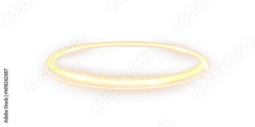 Line, light, gold, circle, background with glowing golden effect, flare and neon magic in PNG format, perfect overlay for transparent PNG art, adding line, light, gold elegance to designs.