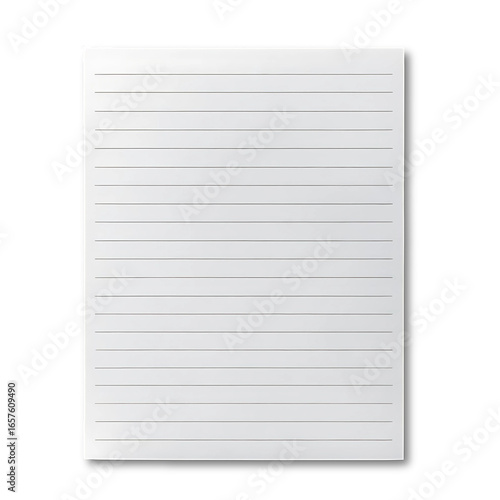 Lined notebook paper isolated on transparent background, clean ruled sheet for digital use, printable stationery element
