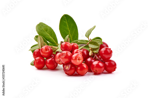 Lingonberry with leaves, isolated on white background.