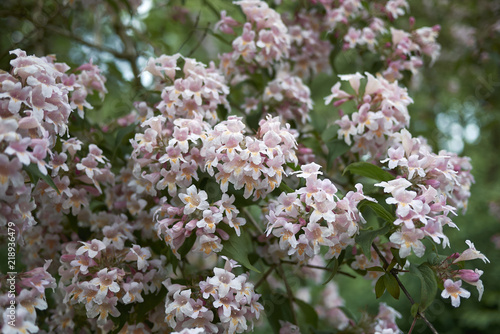 shrub, plant, white, pink, orange, green, flower, inflorescence, flocked, tree branch, leaf, foliage, evergreen, bush, blossom, many-coloured, bright, closeup, ornamental plant, blooming, spring, springtime, season, garden, gardening, public park, flora, environment, nature, botany, botanical