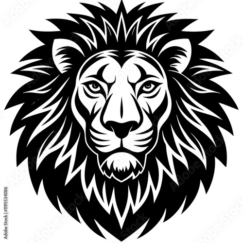 Lion Head black silhouette vector, Simple silhouette Design vector icon with white background. Wild Animal Vector.
