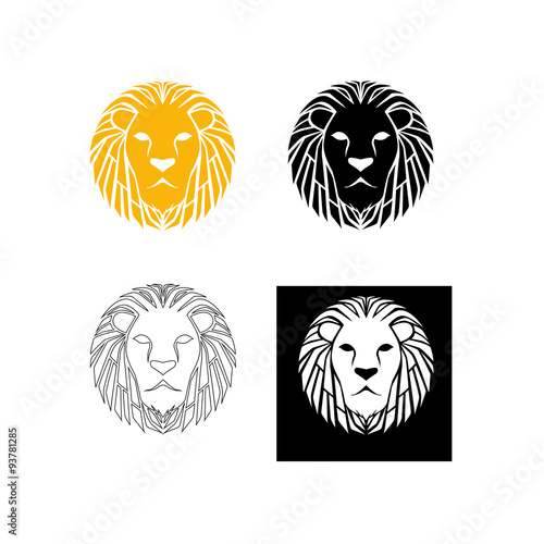 icon, logotype, symbol, vector, graphic, illustration, isolated, yellow, gold, lion, mane, king, wild, animal, head, cat, mascot, concept, black, white