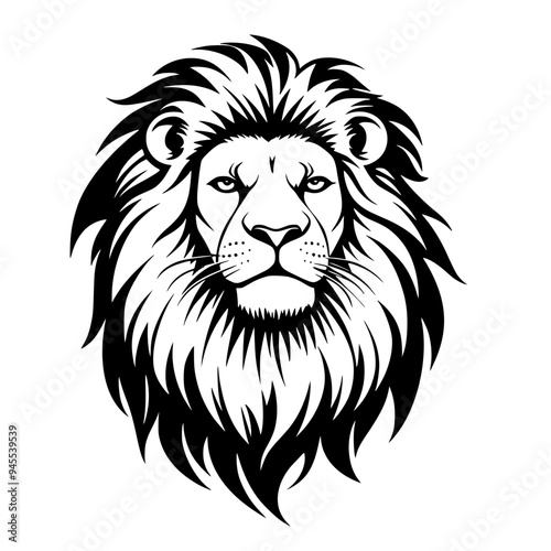 lion, silhouette, majestic, mane, black-and-white, powerful, strength, king of the jungle, regal, animal, wild, predator, felino, big cat, nature, wildlife, royalty, noble, proud, fierce, symbol, illustration, jungle, safari, iconic, bold, strong, dominant, african wildlife, graphic design