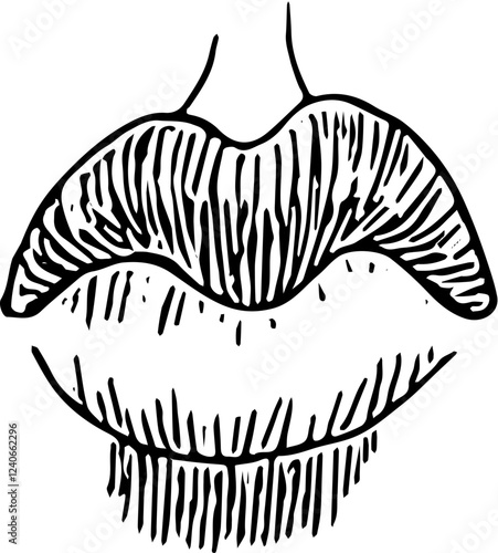 Lips Face part. Hand drawn vector isolated sketch