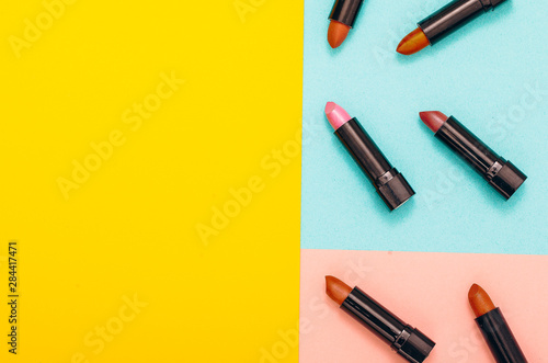 Lipstick. Woman tools. Beauty tools. Makeup. Background.