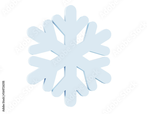 Liquid translucent snowflake made of crystal blue water isolated on white background. 3d render