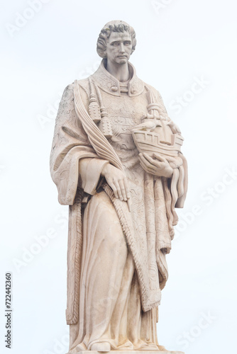 Lisbon, Portugal - December 11, 2023: Statue of St. Vincente (Sao Vicente) at Santa Luzia viewpoint in Alfama district.
