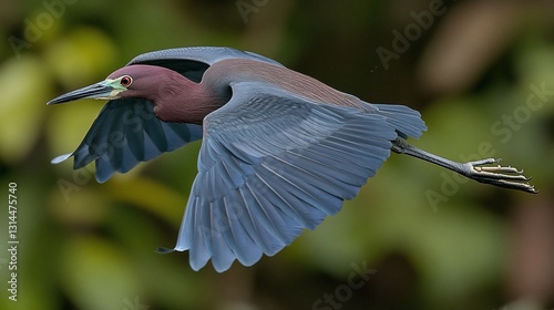 bird, heron, little, blue, flight, flying, wing, feather, wildlife, nature, avian, animal, fauna, green, background, blur, bokeh, tropical, rainforest, jungle, wetland, water bird, wading bird, beak, leg, talon, plumage, colours, vibrant, beauty, elegant, graceful, majestic, wild, outdoors, exotic, creature, vertebrate, biodiversity, conservation, environment, ecosystem, habitat, birding, photo