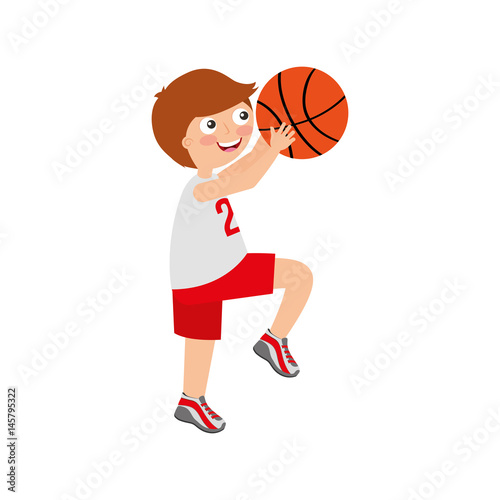 little boy playing basketball vector illustration design