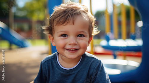 Little boy preschooler playing on the playground outside