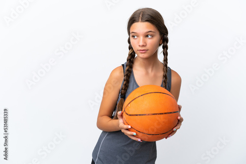 athlete, background, ball, beautiful, blank, caucasian, children, childhood, clean, competition, cute, exercise, female, fitness, fresh, fun, game, girl, healthy, hobby, isolated, leisure, lifestyle, little, natural, people, person, player, professional, sport, activewear, studio, white, young, youth, basketball, children