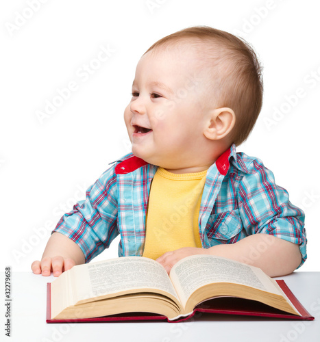 Little child play with book