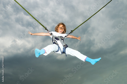 girl, summer, bungee, children, children, active, playing, fly, rope, jumping, trampoline, bouncing, space, sport, action, activity, adrenalin, adrenalin, air, beautiful, bounce, copy, copy space, cord, cute, entertainment, extreme, flying, free, freedom, fun, happiness, happy, high, joy, jump, laugh, laughing, play, playground, pretty, recreation, risk, sky, smile, smiling, stretch, vacation, young
