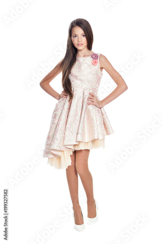 active, background, beautiful, beauty, beige, casual attire, caucasian, children, childhood, clothes, dress, fashion, feeling, fun, girl, happy, isolated, joy, children, kindness, leisure, life, lifestyle, little, people, pleasure, pose, posing, relaxation, smile, white, young