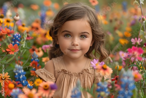 little girl, children, standing, field, flower, colourful, blooming, nature, meadow, grass, plant, flora, botanical, environment, discovery, observation, innocence, curiosity, youthful, beauty, blossom, landscape, rural, countryside, spring, summer, sunny, bright, cheerful, exploration, adventure, growth, youth, joyful, playful, peaceful, generative, ai