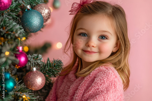 girl, christmas, pink, hat, tree, ornament, holiday, winter, joy, blond, hair, festive, decoration, smile, warmth, colourful, cosy, spirit, season, cheer, celebration, decor, tradition, light, happiness, merry, moment, family, time, photo, magic, charme, atmosphere, gold, red, green, cute, happy, new, year, 2024, 2025, children, lady, baby, children, soft, pastel, decoration
