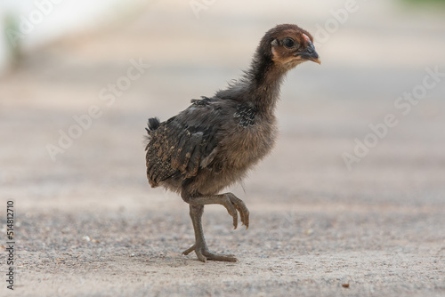 Little hen, chicken walking on sidewlk, chicken run