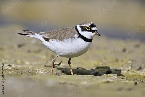 Little Ringed Plover (Charadrius dubius), standing in silt, Aue nature reserve, Reussegg, Sins, Canton Aargau, Switzerland