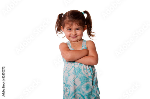 cute, rascal, naughty, toddler, children, children, girl, little, expression, attitude, white, blue, caucasian, latina, hispanic, dress, smile, smirk, young, female