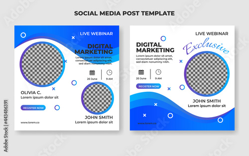 Live webinar template, social media post template. Digital marketing for business promotion.