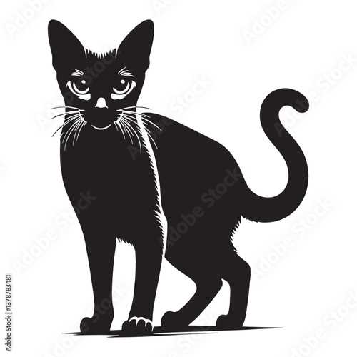 Lively Singapura silhouette, emphasizing the cat's energetic and playful character - Singapura illustration - Singapura vector - cat silhouette