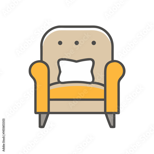 Living Room Armchair with Cushion Icon Representing Comfortable Home Seating and Interior Decor