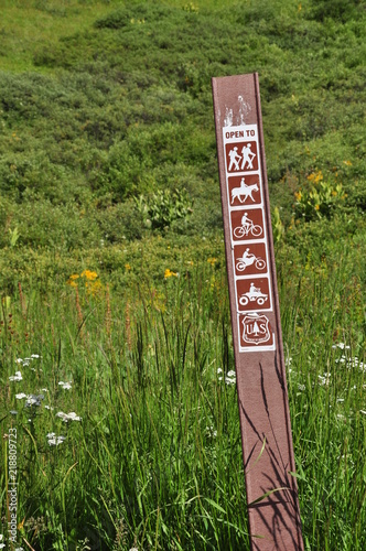 signs, road, blue, concept, warning, travel, sky, word, business, white, street, block, red, block, grass, post, traffic, colorado, mountain, mining, town, old, vintage, a, national forest, view, mountain, high altitude, rocky mountain, rocky