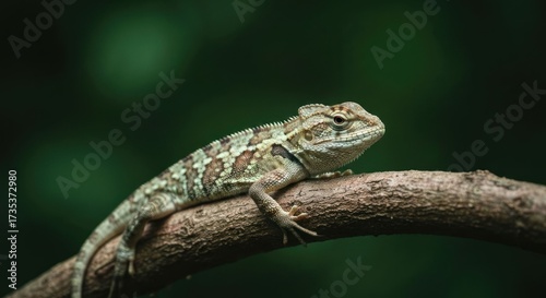 Lizard on branch, blurred background