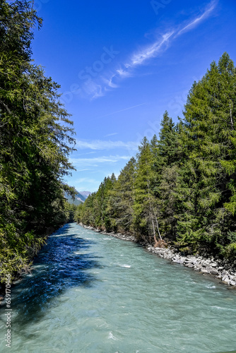 Längenfeld, Ötztaler Ache, Fluss, Uferweg, Ötztal, Wanderweg, Tal, Tirol, Berge, Wald, Landwirtschaft, Sölden, Herbst, Spätsommer, Österreich