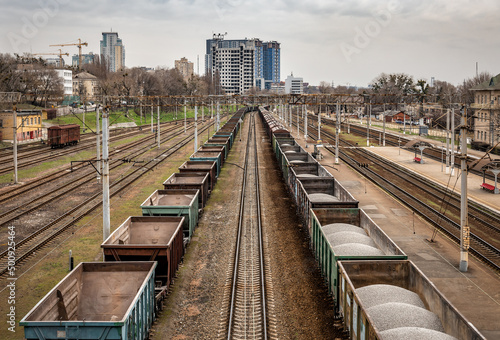 loaded freight trains on the railway