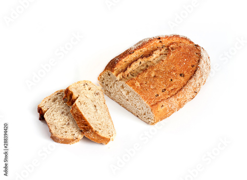 loaf, bread, whole, grain, wheat, food, breakfast, isolated, brown, traditional, classic, slice, cut, white, background, cut-out, closeup, bakery, baked, diet, eat, nourishment, ingredient, single, nobody, snack, lunch, meal, dish, homemade, tasty, delicious, appetising, gold, crunchy, crust, healthy, fresh, bake, rye, sliced, cereal, pastry, dough